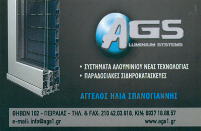 customer tabsΕπικοινωνίαΗ πολύχρονη πείρα και η τεχνογνωσία των ανθρώπων της εταιρείας μας εγγυώνταισιγουριά και αξιοπιστία στις ειδικές κατασκευές κουφωμάτων, καθώς και σεοποιαδήποτε κατασκευαστική απαίτηση των πελατών μας, δίνοντας έμφασηστην άριστη λειτουργικότητα και την άψογη εμφάνιση των κατασκευών μας. Θα είναι χαρά μας να δώσουμε λύσεις σε κάθε κατασκευαστική επιθυμία σας, όπως κουφώματα αλουμινίου, παραδοσιακά κάγκελα, ρολά, γκαραζόπορτες,χωρίσματα, ψευδοροφές, υπόστεγα, πόρτες ασφαλείας, σκάλες,χειροποίητα μεταλλικά έπιπλα και άλλα πολλά.Μεταλλικές ΚατασκευέςΚατασκευές ΑλουμινίουΕίδη ΑλουμινίουΚουφώματα ΑλουμινίουΣυστήματα Αλουμινίου και ΣιδήρουΚάγκελαΣκάλεςΈπιπλα ΜεταλλικάΛεωφόρος Θηβών 102, ΠειραιάςΠΕΙΡΑΙΑΣ ΑΤΤΙΚΗΣΑΤΤΙΚΗ 2104203918 69371888572104203918info@ags1.grwww.ags1.gr Το προτείνω (έχει προταθεί 1 φορές) ΦωτογραφίεςFacebook LikeShare on FacebookTweet Widget