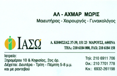 customer tabsΕπικοινωνίαΩράριο: Δευτέρα - Τρίτη - Πέμπτη 17:00 -20:00Μαιευτήρες - ΓυναικολόγοιΥγείαΞηρομέρου 10, Αμπελόκηποι, ΑττικήΑΜΠΕΛΟΚΗΠΟΙ ΑΤΤΙΚΗΣΑΤΤΙΚΗ 2106911706 2106184000 (ΙΑΣΩ) 2107701778(Οικία) 69322611982106184158mayriceal-ahmar@hotmail.com Το προτείνω (έχει προταθεί 0 φορές) ΦωτογραφίεςFacebook LikeShare on FacebookTweet Widget