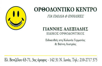 customer tabsΕπικοινωνίαΕιδικευθείς Κολονία Γερμανίας και Βιέννης ΑυστρίαςΚαθημερινά 17:00 -20:00 με ραντεβούΟ ορθοδοντικός Γιάννης Αλεξιάδης αποφοίτησε από το οδοντιατρικό τμήμα του ΕΚΠΑ.Ειδικεύτηκε στην ορθοδοντική στις κλινικές Βιέννης Αυστρίας και Κολωνίας Γερμανίας.Είναι κάτοχος γερμανικού τίτλου ειδικού ορθοδοντικού από το 1990.Εργάστηκε για 8 χρόνια σε πολυορθοδοντική κλινική στην Κολωνία ως μέτοχος. Το 1996 ιδρύει στη Νέα Ιώνια Αττικής το ορθοδοντικό του ιατρείο το οποίο λειτουργεί με επιτυχία έως και σήμερα.Είναι μέλος της ορθοδοντικής εταιρείας Ελλάδος.Σύγχρονη Ορθοδοντική Θεραπεία παιδιών και ενηλίκων με όλες τις νέες μεθόδουςΔιαφανή και Γλωσσικά ΣιδεράκιαΛευκά ΣιδεράκιαΑόρατους ΜηχανισμούςΔιαφανείς ΝάρθηκεςΑισθητική Ορθοδοντική ΟρθοδοντικοίΥγείαΕλ. Βενιζέλου 63-71, Νέα Ιωνία, ΑττικήΝΕΑ ΙΩΝΙΑ ΑΤΤΙΚΗΣΑΤΤΙΚΗ 2102717375 6932708817ioannisalexiadis@yahoo.comhttp://www.orthodontikosioannisaleksiadis.gr Το προτείνω (έχει προταθεί 0 φορές) ΦωτογραφίεςFacebook LikeShare on FacebookTweet Widget