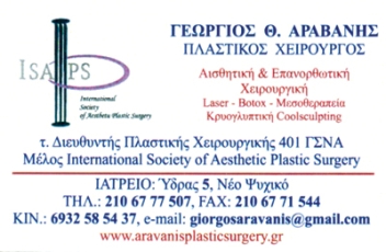 customer tabsΕπικοινωνίαΟ Γεώργιος Αραβανής ασχολείται με όλο το φάσμα επεμβάσεων τηςΑισθητικής Χειρουργικής (πρόσωπο, μαστοί, σώμα κλπ)καθώς και με την Επανορθωτική Χειρουργική.Έχει δημοσιεύσει πολλές μελέτες σε επιστημονικάπεριοδικά πλαστικής χειρουργικής.Έχει επίσης στο ενεργητικό του πολλές παρουσιάσειςσε Ελληνικά και διεθνή επιστημονικά συνέδρια.Μάλιστα έχει τιμηθεί με το πρώτο βραβείο από τηνΕλληνική Εταιρεία Πλαστικής Χειρουργικής για μία εργασία τουτην οποία παρουσίασε στο 4ο Πανελλήνιο Συνέδριο το 1999.Πλαστικοί ΧειρουργοίΥγείαΎδρας 5, Νέο Ψυχικό, ΑττικήΨΥΧΙΚΟ ΑΤΤΙΚΗΣΑΤΤΙΚΗ 2106777507 69325854372106771544giorgosaravanis@gmail.comwww.aravanisplasticsurgery.grΓεώργιος Αραβανής Πλαστικός Χειρουργός- Dr George Aravanis Plastic Surgeon Το προτείνω (έχει προταθεί 0 φορές) ΦωτογραφίεςFacebook LikeShare on FacebookTweet Widget