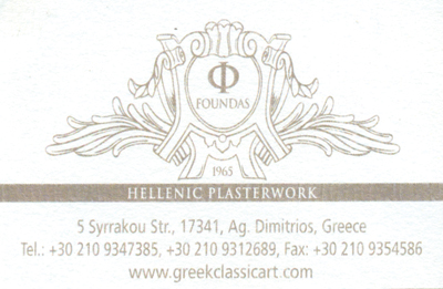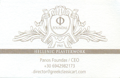 customer tabsΕπικοινωνίαΗ εταιρία μας με πάνω από 50 χρόνια εμπειρίας στον κλάδο των διακοσμήσεων, με αναρίθμητα σχέδια από κορνίζες, κολονάκια, αετώματα, υπέρθυρα, τοιχοποιίας & επένδυσης, γύψινα, διακοσμητικά & τσιμέντινες ειδικές κατασκευές, αναλαμβάνει κάθε είδους κατασκευή από τον σχεδιασμό, την κατασκευή των καλουπιών, τα εκμαγεία μέχρι την παραγωγή και τοποθέτηση από τα έμπειρα συνεργεία μας.Με τη χρήση σύγχρονων τεχνικών και ηλεκτρονικών μέσων (όπως 3D απεικόνιση) έχετε τη δυνατότητα να δείτε την επιθυμία σας ολοκληρωμένη πριν την κατασκευή στο χώρο σας.Με τη χρήση παραδοσιακών υλικών όπως γύψος και τσιμέντο αλλά και με μίξεις σύγχρονης τεχνολογίας όπως GRC, GRFC κλπ, έχουμε τη δυνατότητα να υλοποιήσουμε κάθε κατασκευαστική σας ιδέα και να δημιουργήσουμε το ιδανικό περιβάλλον για εσάς.Διαχρονική αξία μας, η άριστη ποιότητα των έργων μας.Γύψινες Διακοσμήσεις και ΚατασκευέςΔόμηση - ΚατοικίαΣυρράκου 5, Άγιος Δημήτριος, ΑττικήΑΓΙΟΣ ΔΗΜΗΤΡΙΟΣ ΑΤΤΙΚΗΣΑΤΤΙΚΗ 2109347385 21093126892109354589info@greekclassicart.comwww.greekclassicart.com/ΕΛΛΗΝΙΚΗ ΓΥΨΟΤΕΧΝΙΑ- HELLENIC PLASTERWORK Το προτείνω (έχει προταθεί 0 φορές) ΦωτογραφίεςFacebook LikeShare on FacebookTweet Widget