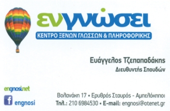 customer tabsΕπικοινωνίαΥψηλά ποσοστά επιτυχίαςΈμπειροι καθηγητέςΣύγχρονες μέθοδοι βασισμένες σε διεθνή εκπαιδευτικά πρότυπαΕύκολη προσβασιμότητα (μεταξύ μετρό Πανόρμου και Κατεχάκη)Προσιτές τιμέςΦιλικό ΠεριβάλλονΕκμάθηση:ΑγγλικάΓαλλικάΓερμανικάΙταλικάΙσπανικάΠληροφορικήΚέντρα Ξένων ΓλωσσώνΣχολές ΠληροφορικήςΕκπαίδευσηΒολανάκη 17, Αθήνα, ΑττικήΑΜΠΕΛΟΚΗΠΟΙ ΑΤΤΙΚΗΣΑΤΤΙΚΗ 2106984530engnosi@otenet.grEngnosi - Αμπελόκηποι Το προτείνω (έχει προταθεί 0 φορές) ΦωτογραφίεςFacebook LikeShare on FacebookTweet Widget