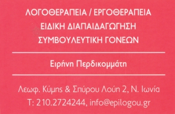 customer tabsΕπικοινωνίαΛογοπεδικοί - ΛογοθεραπευτέςΥγείαΣπύρου Λούη 2 & Λεωφόρος Κύμης, Νέα ΙωνίαΝΕΑ ΙΩΝΙΑ ΑΤΤΙΚΗΣΑΤΤΙΚΗ 2102724244 6946876933info@epilogou.grwww.epilogou.gr Το προτείνω (έχει προταθεί 0 φορές) ΦωτογραφίεςFacebook LikeShare on FacebookTweet Widget