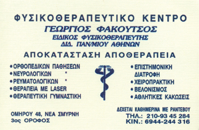 customer tabsΕπικοινωνίαΑυχενικό ΣύνδρομοManual TherapyΑθλητικές ΚακώσειςΦυσικοθεραπευτέςΥγείαΟμήρου 48, Νέα ΣμύρνηΝΕΑ ΣΜΥΡΝΗ ΑΤΤΙΚΗΣΑΤΤΙΚΗ 2109345284 6944244316 Το προτείνω (έχει προταθεί 4 φορές) ΦωτογραφίεςFacebook LikeShare on FacebookTweet Widget