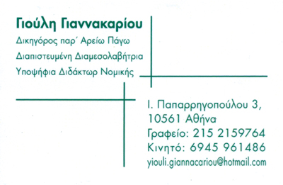 customer tabsΕπικοινωνίαΔικηγόροι και Δικηγορικά ΓραφείαΔιαπιστευμένος ΔιαμεσολαβητήςΥπηρεσίεςΠαπαρρηγοπούλου 3, Πλατεία ΚλαυθμώνοςΑΘΗΝΑ ΑΤΤΙΚΗΣΑΤΤΙΚΗ 215 2159546 215 2159764 6945961486yiouli.giannacariou@hotmail.com Το προτείνω (έχει προταθεί 2 φορές) ΦωτογραφίεςFacebook LikeShare on FacebookTweet Widget