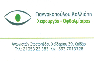 customer tabsΕπικοινωνίαΔέχεται Δευτέρα 18:30 - 20:30Τρίτη & Πέμπτη 17:00 -20:30Τετάρτη 09:00 - 10:30ΟφθαλμίατροιΥγείαΑγωνιστών Στρατοπέδου 39, Χαϊδαρι, ΑττικήΧΑΪΔΑΡΙ ΑΤΤΙΚΗΣΑΤΤΙΚΗ 2105322383 6937013728 Το προτείνω (έχει προταθεί 0 φορές) ΦωτογραφίεςFacebook LikeShare on FacebookTweet Widget