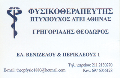 customer tabsΕπικοινωνίαΦυσικοθεραπευτέςΥγείαΠερικλέους 1, Αγία Βαρβάρα, ΑττικήΑΓΙΑ ΒΑΡBΑΡΑ ΑΤΤΙΚΗΣΑΤΤΙΚΗ 2112130270 6976056128theophysio80@hotmail.com Το προτείνω (έχει προταθεί 0 φορές) ΦωτογραφίεςFacebook LikeShare on FacebookTweet Widget