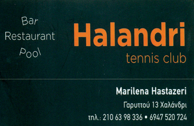 customer tabsΕπικοινωνίαΕστιατόρια και ΤαβέρνεςΔιασκέδαση - ΕστίασηΤουρισμόςΓαρυττού 13, Χαλάνδρι, ΑττικήΧΑΛΑΝΔΡΙ ΑΤΤΙΚΗΣΑΤΤΙΚΗ 2106398336marilena84h@hotmail.comwww.halandritennisclub.gr Το προτείνω (έχει προταθεί 0 φορές) ΦωτογραφίεςFacebook LikeShare on FacebookTweet Widget