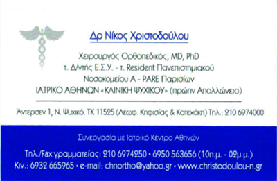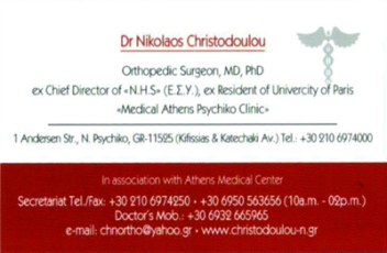 Δρ Νικόλαος Χριστοδούλου Χειρουργός Ορθοπεδικός MD PhD