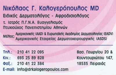customer tabsΕπικοινωνίαΕιδικός Δερματολόγος – ΑφροδισιολόγοςΠτυχιούχος Πανεπιστημίου ΑθηνώνΔΕΡΜΑΤΟΛΟΓΙΑΑνατομία ΔέρματοςΚλινική διαγνωστική δερματολογίαΔέρμα: Λιπαρό – ΜεικτόΔέρμα: Ξηρό – ΑφυδατωμένοΔέρμα: Ευαίσθητο – ΥπερευαίσθητοΥπερτρίχωση – ΔασυτριχισμόςΔερματοχειρουργικήΑΙΣΘΗΤΙΚΗ ΔΕΡΜΑΤΟΛΟΓΙΑΡυτίδες εμφυτεύματαΜεσοθεραπείεςΘεραπείες μαλλιώνΘεραπείες προσώπουΘεραπείες σώματοςΤΕΧΝΙΚΕΣ LASERΔερματολογίαΑφροδισιολογίαΔερματολόγοι - ΑφροδισιολόγοιΥγείαΒασιλέως Γεωργίου & Κουντουριώτου 147, ΠειραιάςΠΕΙΡΑΙΑΣ ΑΤΤΙΚΗΣΑΤΤΙΚΗ 2104122095 6932589828info@drkalogeropoulos.comwww.drkalogeropoulos.comwww.dermaestheticlinic.gr Το προτείνω (έχει προταθεί 0 φορές) ΦωτογραφίεςFacebook LikeShare on FacebookTweet Widget