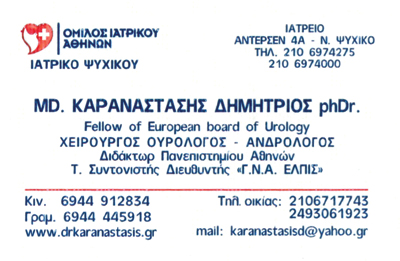 customer tabsΕπικοινωνίαΟυρολόγοι - ΑνδρολόγοιΟυρολόγοιΥγείαΆντερσεν 2 - 4, Νέο ΨυχικόΨΥΧΙΚΟ ΑΤΤΙΚΗΣΑΤΤΙΚΗ 2106974275 6944912834karanastasisd@yahoo.grwww.drkaranastasis.gr Το προτείνω (έχει προταθεί 0 φορές) ΦωτογραφίεςFacebook LikeShare on FacebookTweet Widget