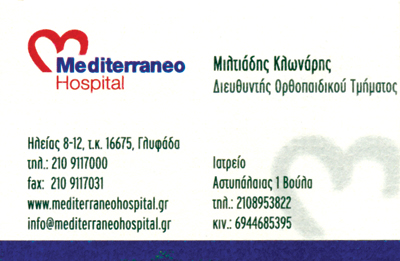 customer tabsΕπικοινωνίαΟρθοπεδικοί ΙατροίΧειρούργοι ΟρθοπεδικοίΥγείαΗλείας 8 - 12, ΓλυφάδαΑστυπάλαιας 1, ΒούλαΓΛΥΦΑΔΑ ΑΤΤΙΚΗΣΒΟΥΛΑ ΑΤΤΙΚΗΣΑΤΤΙΚΗ 2109117000 2108953822 69446853952109117031info@mediterraneohospital.grwww.mediterraneohospital.gr Το προτείνω (έχει προταθεί 0 φορές) ΦωτογραφίεςFacebook LikeShare on FacebookTweet Widget