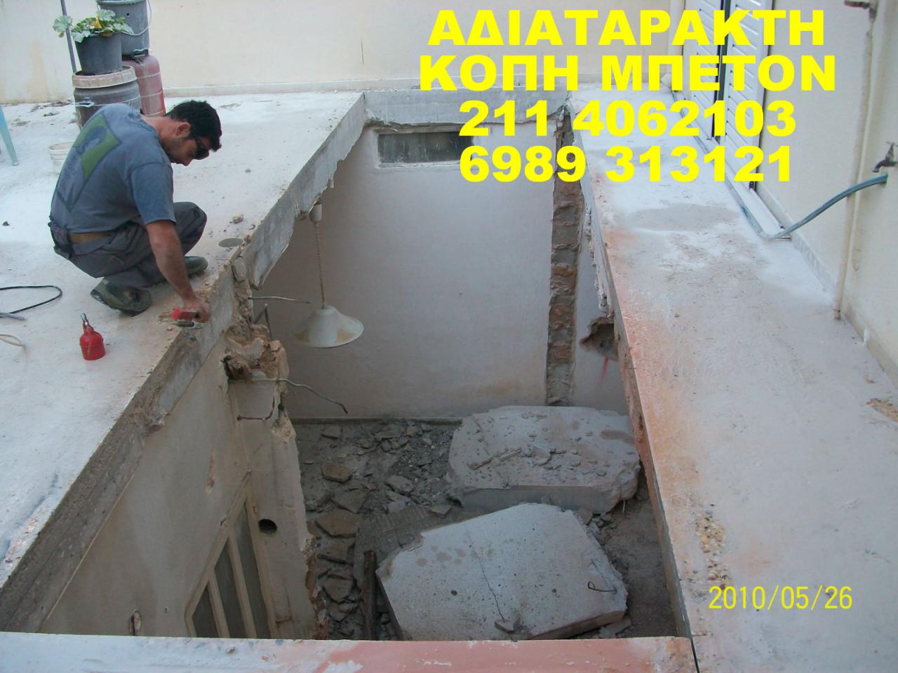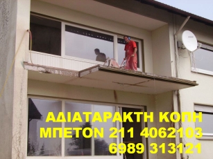 Η εταιρία ZAKO εισήγαγε τηνΑΔΙΑΤΑΡΑΚΤΗ ΚΟΠΗ σκυροδέματος. Μία σύγχρονη τεχνική στις κατεδαφίσεις, καθαιρέσεις και κοπές του μπετόν χωρίς θόρυβο και χωρίς σκόνη.Η ZAKO έχει πετύχει μια σταθερά ανοδική πορεία, αυξάνοντας καθημερινά τον όγκο εργασιών της. Παρέχει ολοκληρωμένες τεχνικές λύσεις, επιτυγχάνοντας ταυτόχρονα ταχύτατους ρυθμούς εκτέλεσης, στη πιο κοντινή σχέση κόστους και αποτελέσματος. Με εξειδίκευση και συνέπεια μπορεί και ανταγωνίζεται με σταθερή αξία τη σχετική με το είδος αγορά Η εταιρία μας είναι εξοπλισμένη με την τελευταία λέξη της τεχνολογίας, ενώ τα εξειδικευμένα εργαλεία που διαθέτουμε, καλύπτουν απόλυτα οποιαδήποτε ανάγκη στο χώρο ΑΔΙΑΤΑΡΑΚΤΗ ΚΟΠΗ ΜΠΕΤΟΝ, ΔΙΑΤΡΗΣΗ ΜΠΕΤΟΝ καθώς και ενισχύσεις κτηρίων. Η εταιρία μας είναι πρωτοπόρος εταιρία στο χώρο ΑΔΙΑΤΑΡΑΚΤΗ ΚΟΠΗ ΜΠΕΤΟΝ, ΔΙΑΤΡΗΣΗ ΜΠΕΤΟΝ. Οι υπηρεσίες μας - Στρογγυλές οπές για σωληνώσεις-Η εταιρία έχει την τεχνολογία καθώς και την τεχνογνωσία διάνοιξης οπών σε όλα τα δομικά υλικά. - Διανοίξεις σε κάθετες επιφάνειες για καινούριες πόρτες και παράθυρα Τετράγωνες οπές για ανελκυστήρες και κλιμακοστάσια Η εταιρία εξοπλισμένη με τα πλέον σύγχρονα μηχανήματα σε συνδυασμό με το έμπειρο προσωπικό έχει την δυνατότητα κοπής όλων των δομικών υλικώνσε οποιοδήποτε πάχος. Συρματοκοπή Ανθρακονήματα - ΥαλοϋφάσματαΤσιμεντενέσεις - Ρητινενέσεις Κοπή τυφλού τμήματος οπλισμένου μπετόνΓενικευμένη χρήση μέσων αδιατάρακτης κοπής για την ελεγχομένη κατεδάφιση κτιρίων ή μέρους αυτών.Αναλαμβάνουμε σε όλη την Ελλάδα κάθε τεχνική εργασία και εξυπηρετούμε κάθε ανάγκη της Αδιατάρακτη Κοπη και Διάτριση μπετόν σε πολυκατοικίας, του διαμερίσματος σας ή του επαγγελματικού χώρου σας, οπως εργοστασια και παρκιν. Αποξήλωση των παλαιών (μεσοτοιχίες, κουζίνες, μπάνια, πόρτες & κουφώματα, δάπεδα / πατώματα, κλπ.)ΦΤΗΝΟΤΕΡΗ ΠΡΟΤΑΣΗ ΣΤΗΝ ΑΓΟΡΑ Οι δραστηριότητες μας δεν περιορίζονται στην Αττική όπου εδρεύει, αλλά επεκτείνονται σε όλη την Ελλάδα. Το γραφείο μας, σε οποιαδήποτε κλίμακα έργου, διαθέτει συνέπεια, ταχύτητα, ποιοτική εκτέλεσης εργασιών και χαμηλό κόστος. Για να μας ζητήστε προσφορά η περισσότερα πληροφορίας Τηλ/Fax:2114062103 Κιν:6989 313121