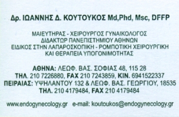 customer tabsΕπικοινωνίαΔιδάκτωρ Πανεπιστημίου ΑθηνώνΕιδικός στη Λαπαροσκοπική Ρομποτική ΧειρουργικήΘεραπεία ΥπογονιμότηταςΚαθημερινά κατόπιν ραντεβού.Μαιευτήρες - ΓυναικολόγοιΥγείαΛεωφόρος Βασιλίσσης Σοφίας 48, ΑθήναΥψηλάντου 132 & Λεωφόρος Βασιλέως Γεωργίου, ΠειραιάςΑΘΗΝΑ ΑΤΤΙΚΗΣΠΕΙΡΑΙΑΣ ΑΤΤΙΚΗΣΑΤΤΙΚΗ 2107226880 2104179484 6941522337info@endogynecology.grwww.endogynecology.grΛαπαροσκοπικό Κέντρο Αθηνών Το προτείνω (έχει προταθεί 0 φορές) ΦωτογραφίεςFacebook LikeShare on FacebookTweet Widget