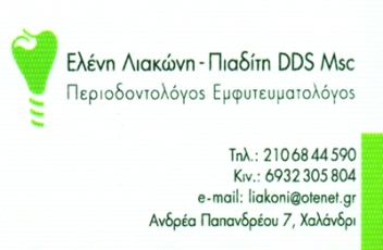 customer tabsΕπικοινωνίαΠεριοδοντολόγοιΥγείαΕμφυτευματολόγοιΑν. Παπανδρέου 7, ΧαλάνδριΧΑΛΑΝΔΡΙ ΑΤΤΙΚΗΣΑΤΤΙΚΗ 2106844590 6972800615 6932305804dentpiaditis@gmail.comliakoni@otenet.gr Το προτείνω (έχει προταθεί 0 φορές) ΦωτογραφίεςFacebook LikeShare on FacebookTweet Widget