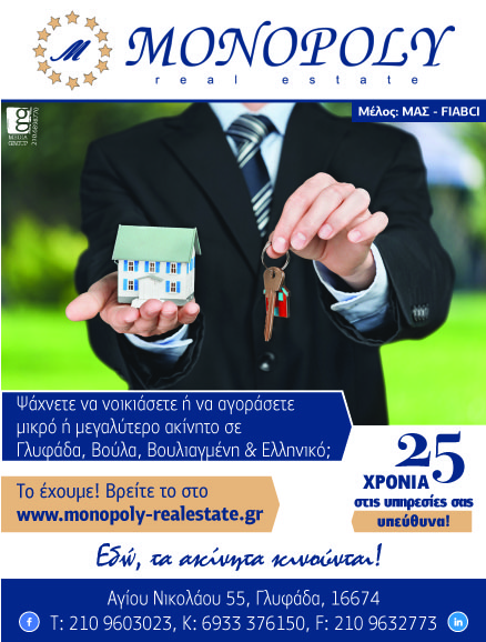 Για να δείτε όλα μας τα ακίνητα, παρακαλώ επισκεφθείτε την ιστοσελίδα μας www.monopoly-realestate.gr. Σας ευχόμαστε καλή περιήγηση και μην παραλείψετε να δείτε τις Αποκλειστικότητες, τις Ευκαιρίες και τα ακίνητα που διατίθονται για ανταλλαγή!
