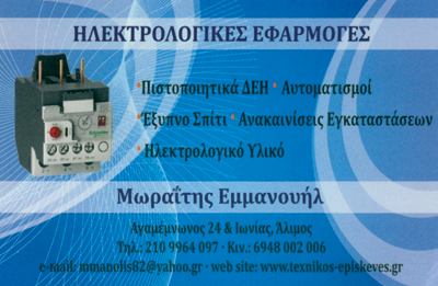 customer tabsΕπικοινωνίαΒλάβες ηλεκτρολογικές24ωρη εξυπηρέτησηΗλεκτρικές εργασίεςΑυτοματισμοίΕπισκευές Ηλεκτρικών ΣυσκευώνΑνακαινίσειςΠιστοποιητικά ΔΕΗ ΗλεκτρολόγοιΗλεκτρολογικές ΕγκαταστάσειςΔόμηση - ΚατοικίαΑγαμέμνονος 24, Εκτελωνιστών, ΆλιμοςΑΛΙΜΟΣ ΑΤΤΙΚΗΣΑΤΤΙΚΗ 2109964097 6948002006mmanolis82@yahoo.gr Το προτείνω (έχει προταθεί 1 φορές) ΦωτογραφίεςFacebook LikeShare on FacebookTweet Widget