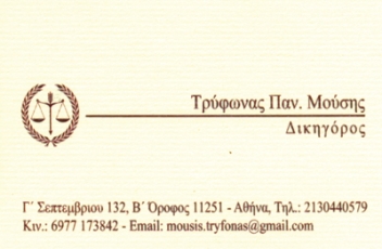 customer tabsΕπικοινωνίαΔικηγόροι και Δικηγορικά ΓραφείαΥπηρεσίες3ης Σεπτεμβρίου 132, ΑθήναΑΘΗΝΑ ΑΤΤΙΚΗΣΑΤΤΙΚΗ 2130440579 6977173842mousis.tryfonas@gmail.com Το προτείνω (έχει προταθεί 0 φορές) ΦωτογραφίεςFacebook LikeShare on FacebookTweet Widget