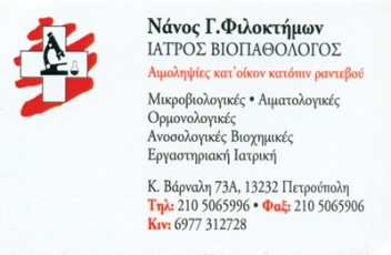 customer tabsΕπικοινωνίαΜικροβιολόγοι - ΒιοπαθολόγοιΜικροβιολογικά ΕργαστήριαΥγείαΚώστα Βάρναλη 73Α, ΠετρούποληΠΕΤΡΟΥΠΟΛΗ ΑΤΤΙΚΗΣΑΤΤΙΚΗ 2105065996 69773127282105065996nanosfillab@gmail.com Το προτείνω (έχει προταθεί 1 φορές) ΦωτογραφίεςΠροσφορές Προσφορά Ετήσιου Προγράμματος ΥγείαςFacebook LikeShare on FacebookTweet Widget