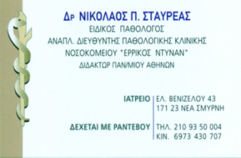 customer tabsΕπικοινωνίαΕιδικός ΠαθολόγοςΑναπληρωτής Διευθυντής Α' Παθολογικής ΚλίνικήςΕρρίκος ΝτυνάνΔέχεται καθημερινά 17:00 -21:00 με ραντεβούΠαθολόγοιΥγείαΕλ. Βενιζέλου 43, Νέα Σμύρνη, ΑττικήΝΕΑ ΣΜΥΡΝΗ ΑΤΤΙΚΗΣΑΤΤΙΚΗ 2109350004 6973430707nstavr@hotmail.gr Το προτείνω (έχει προταθεί 0 φορές) ΦωτογραφίεςFacebook LikeShare on FacebookTweet Widget