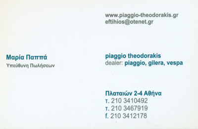 customer tabsΕπικοινωνίαΕμπόριο Μοτοσικλετών PIAGGIOΕξουσιοδοτημένο SERVICE PIAGGIOΑντιπροσωπείες - Εισαγωγές και Βιομηχανίες Μοτοσικλετών και ΜοτοποδηλάτωνΑνταλλακτικά και Εξαρτήματα ΜοτοσικλετώνΣυνεργεία ΜοτοσικλετώνAUTO - MOTOΠλαταιών 2, Κεραμεικός - ΑθήναΑΘΗΝΑ ΑΤΤΙΚΗΣΑΤΤΙΚΗ 21034679192103250268eftihios@otenet.gr Το προτείνω (έχει προταθεί 0 φορές) ΦωτογραφίεςFacebook LikeShare on FacebookTweet Widget