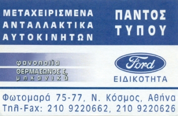 customer tabsΕπικοινωνίαΕιδικότητα FORD.Αυτοκινήτων ΑνταλλακτικάAUTO - MOTOΦωτομάρα 75-77, Νέος Κόσμος, ΑττικήΝΕΟΣ ΚΟΣΜΟΣ ΑΘΗΝΩΝΑΤΤΙΚΗ 2109220626 2109220719 6939097365thermasonos@gmail.com Το προτείνω (έχει προταθεί 0 φορές) ΦωτογραφίεςFacebook LikeShare on FacebookTweet Widget