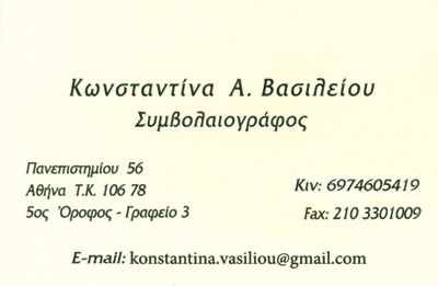 customer tabsΕπικοινωνίαΣυμβολαιογράφοιΥπηρεσίεςΠανεπιστημίου 56, 5ος όροφος, Γραφείο 3, ΑθήναΑΘΗΝΑ ΑΤΤΙΚΗΣΑΤΤΙΚΗ 2103301888konstadina.vasiliou@gmail.com Το προτείνω (έχει προταθεί 0 φορές) ΦωτογραφίεςFacebook LikeShare on FacebookTweet Widget