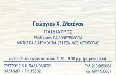 customer tabsΕπικοινωνίαΠαιδίατροιΥγείαΣυγγρού 2, ΧαλάνδριΧΑΛΑΝΔΡΙ ΑΤΤΙΚΗΣΑΤΤΙΚΗ 2106850881 6944533637zlatanosg@yahoo.gr Το προτείνω (έχει προταθεί 1 φορές) ΦωτογραφίεςFacebook LikeShare on FacebookTweet Widget